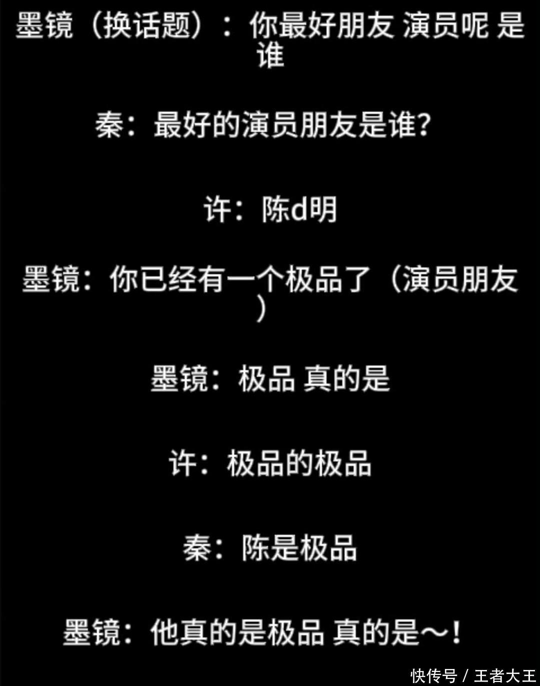 更绝的是,秦雯一面说陈道明是自己圈内最好的演员朋友,一面各种吐槽陈道明,说他爱现场改词,改完又记不下来,王家卫又接话,说他是极品,秦雯跟她的助手也认同,说陈道明确实是极品,这还不够,王家卫又说陈道明是“阴阳同体”。